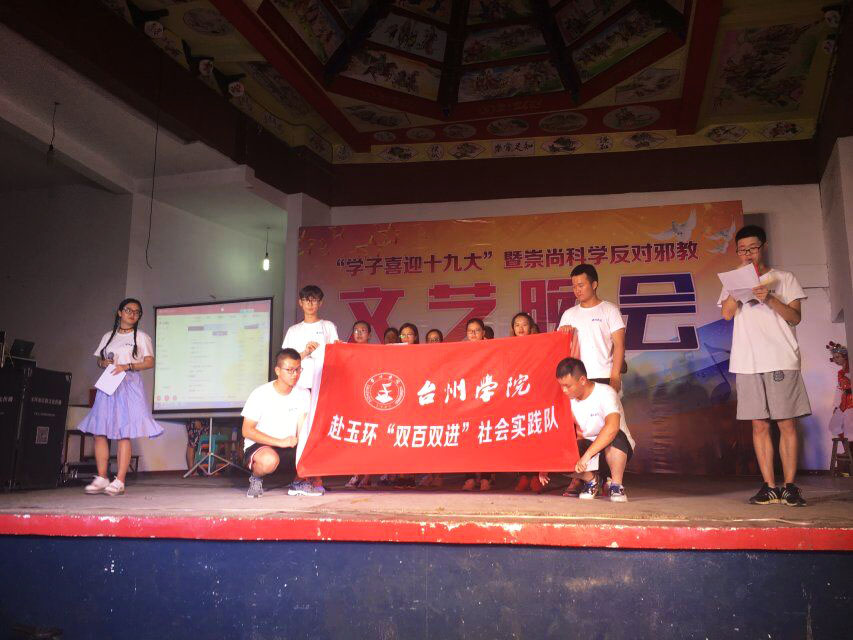 烈日炎炎,挡不住实践队的步伐。下午2点,实践队在生命学院辅导员任敬钢老师的带领下与数信学院和医学院的实践队一起在垟青社区文化大礼堂举办“学子喜迎十九大”暨崇尚科学反对邪教文艺晚会。认真的侧影,挥洒的汗水以及回响的歌声预示着本次活动的成功。实践队关于五水共治的诗朗诵引起了许多观众的共鸣,赢得阵阵掌声,这给予了实践队极大的鼓励。在所有实践队参与人员和垟青社区居民的精心准备下,文艺汇演圆满结束。