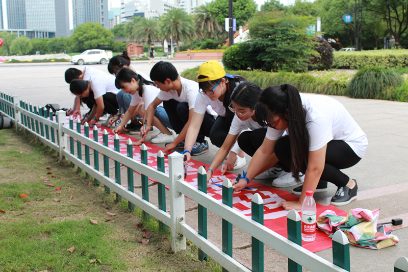 为了宣传大家保护海洋生态,共建碧海蓝天。台州学院“海洋之心”暑假社会实践队于7月9日在市民广场进行了“骑行快闪”活动和“横幅签名”活动。