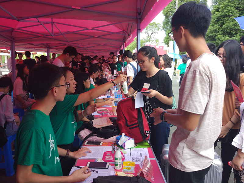 晨曦微露,学院迎新志愿者就在新生接待处集合了,分配任务之后便各自忙活起来。他们身穿“绿色迎新服”,精神饱满地穿梭在迎新队伍中;他们手拿照相机,在“生命许愿树”前为新生和家长按下幸福的快门;他们热情洋溢,用贴心细致的服务装点着校园迎新的绚丽画布。下车点,志愿者采取“一对一”服务,帮助新生搬运行李,引导新生办理手续等;报到点,志愿者忙着报到注册、分发材料,耐心为新生和家长答疑解惑。虽炎炎烈日,却无法阻挡志愿者挥洒汗水的步伐,他们用热情传递温暖,用真诚感动新生。据了解,今年学院共招募迎新志愿者200余名,前期对他们进行了充分的培训和指导,此外所有的迎新物资在新生报到前均已到位。团学会主席杨阳作为本次迎新志愿服务的统筹人,她表示,志愿服务就是学长学姐们发挥“传、帮、带”的作用,一方面展现生命学子的良好风貌,把学长学姐的精气神通过身体力行带给所有的新生,另一方面则希望更多的新生能够培养奉献意识,服务社会。