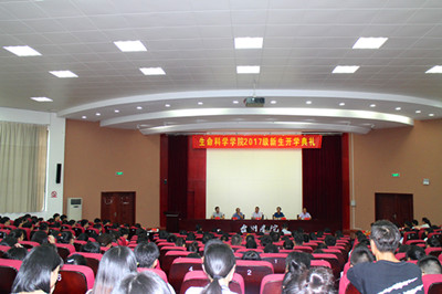 9月11日下午,学术报告厅里回荡着庄严肃穆的国歌声,生命科学学院2017级新生开学典礼随之拉开序幕,学院党政领导、系室主任、班主任、辅导员和教务员以及全体新生参加会议。