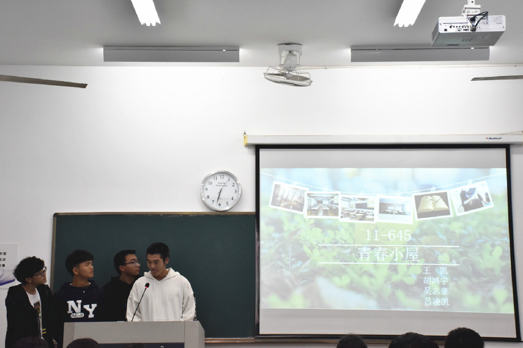 本届寝室风尚大赛分为日常检查得分、寝室环境设计、最美寝室书桌、最美寝室故事等部分组成。经过前期初选,共有12个寝室脱颖而出进入当晚的决赛。各寝室通过PPT的形式向评委与观众们介绍精心布置的寝室,展现独特的寝室文化和充满乐趣的寝室生活。呈现过程中每个寝室各具亮点、应接不暇,有的为自己寝室取了有趣别名;有的则在生动的讲解中穿插了寝室成员共同拍摄的视频,温暖友爱;有的向大家展示了每个成员的个人特色,幽默风趣;有的通过歌曲来展示寝室文化,赢得掌声阵阵。每个寝室都有各自独特的设计理念,但温暖美好是所有寝室的共同目标。每个寝室的最美故事让我们感受到寝室如家、友爱和谐,赢得了评委与观众们的拍手称赞。比赛最后,学院辅导员任敬钢老师对本场比赛做了点评,表示寝室不仅仅关注设计装扮,更要侧重文化内涵、学习氛围的打造,希望能将优秀寝室的良好氛围与精神继续传递下去。最终10-123寝室获得本届寝室风尚大赛一等奖。