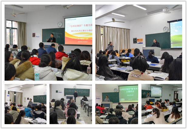 为严肃考风考纪,加强学生诚信考试、安全自律教育,12月27至1月3日,生命学院各班开展“会师星期四”期末考风考纪及假期安全教育专题交流会,进一步发挥“会师星期四”师生交流日活动的品牌优势,在师生联动交流中体现全员育人的教育目标。