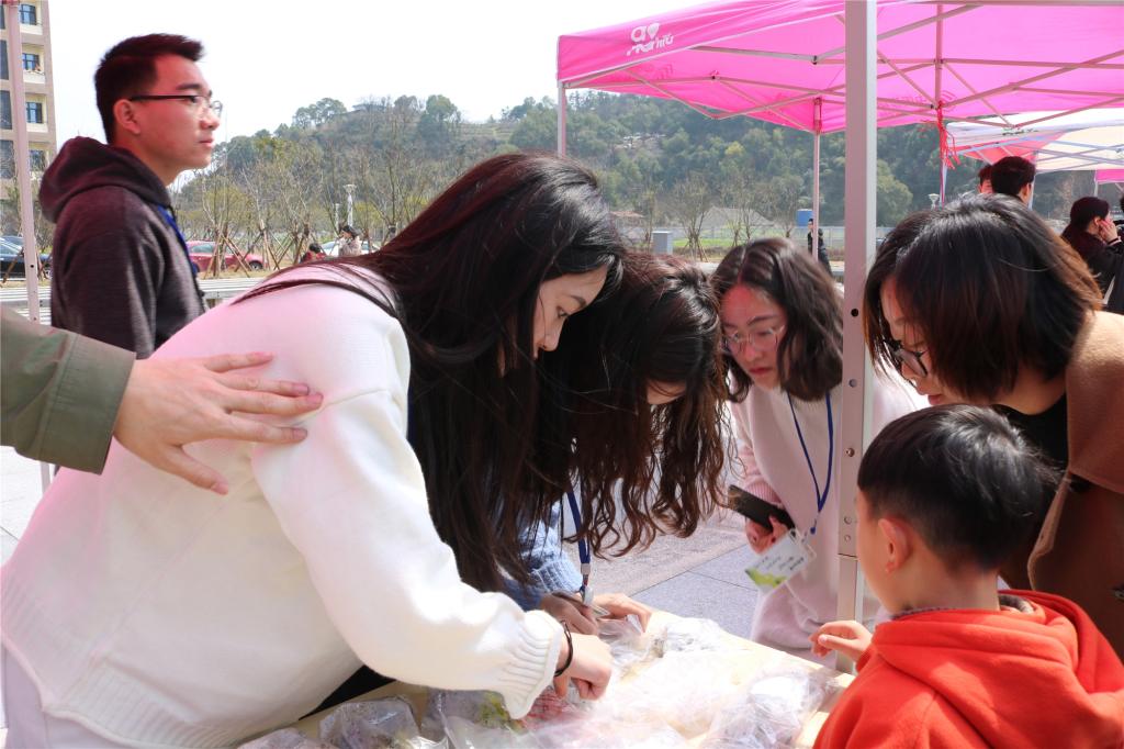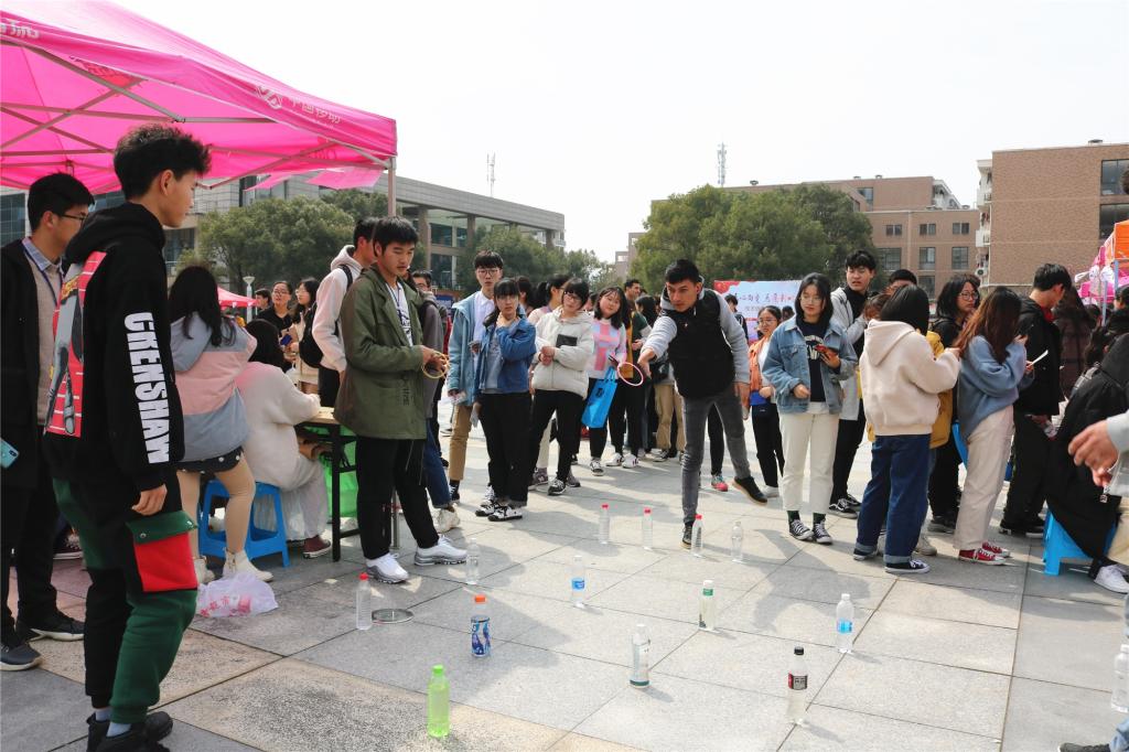 广场上人头攒动、热闹非凡,各二级学院都以组织创建游戏的形式参与此次活动。我院的游戏则是先用吸铁石吸引硬币,吸引得到的硬币数目确定套圈个数;再以套圈的形式圈矿泉水瓶,以此来得到奖励。活动期间,同学们情绪高涨、屏气凝神,专心致志于整个游戏过程。获胜者将活动一管“生命种子”,供同学们回宿舍种植,传播绿色环保理念。游戏的过程有趣好玩,却吸引了不少同学前来参加,其中还不乏外国友人。
