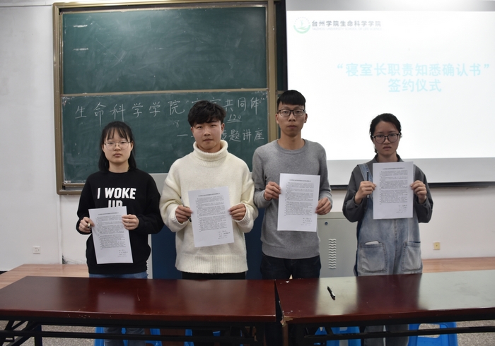 会上,学生代表凌新炜同学宣读了《生命科学学院寝室长职责知悉确认书》,寝室长代表们现场签订了《生命科学学院寝室长职责知悉确认书》。