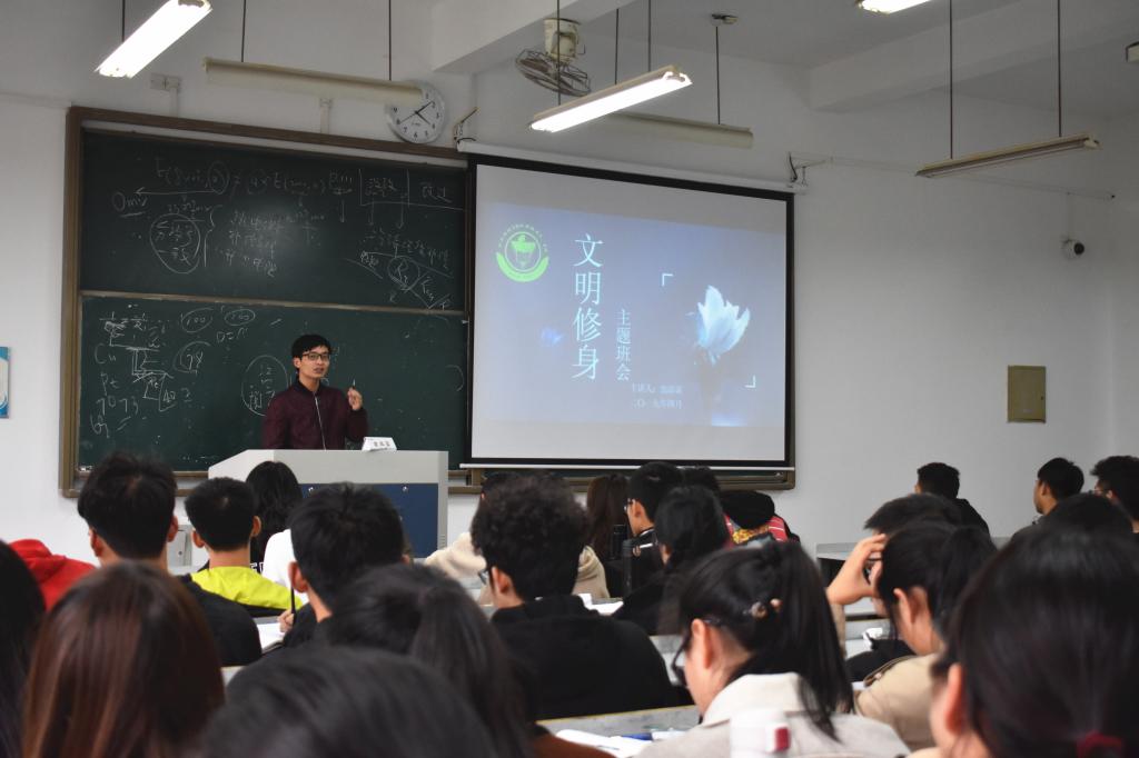 活动首先由翁老师主持召开“文明修身”主题班会,围绕“文明与文化”对班级近期整体情况作剖析性总结,进而针对存在的问题与不足,提出建议意见,希望同学们秉承“澡身浴德,修业及时”校训,践行“齐正身,书育人”班训,做到以德立身、以德立学,为在教师岗位上以德施教、以德育德打下坚实基础。