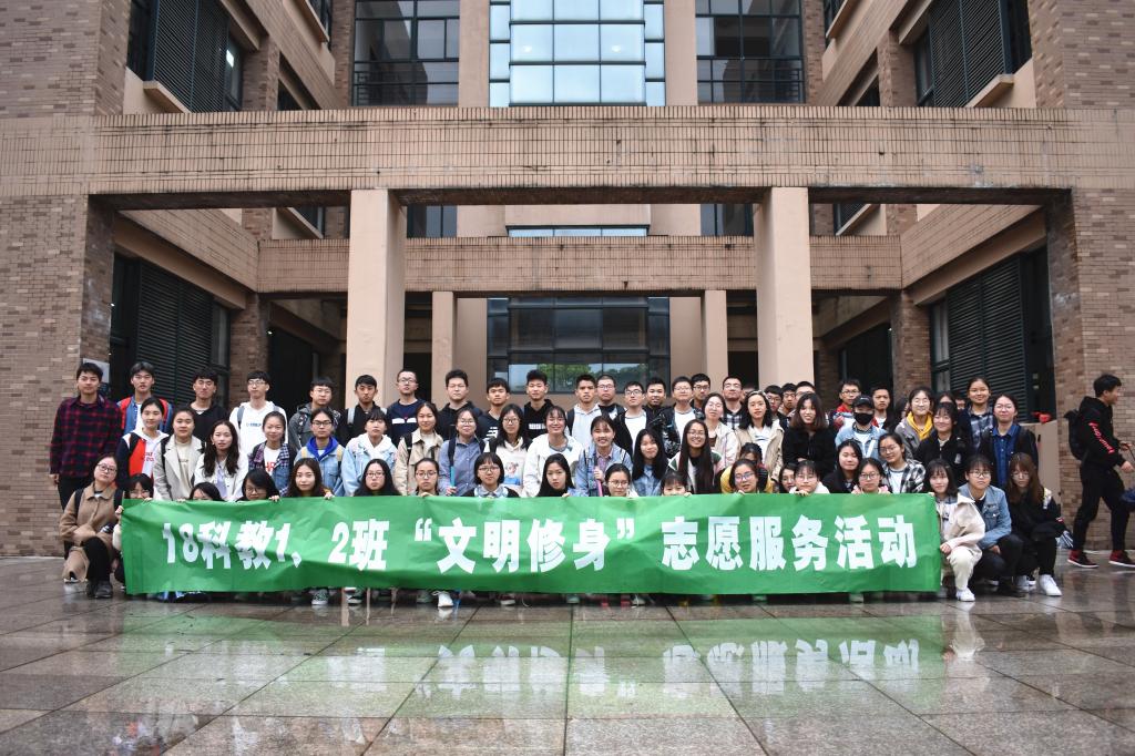 文明修身,点滴做起。4月11日,18科学教育1、2班积极响应学院号召,开展“文明修身”系列活动,班主任翁添富老师及全体同学参与。