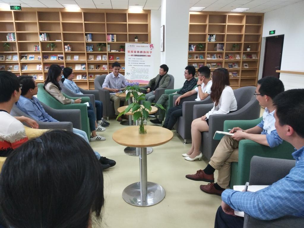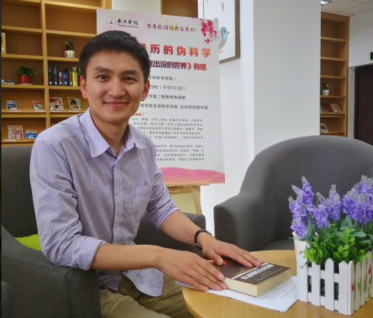 2019年4月29日下午,由生命科学学院和图书馆主办的书香校园读书会在图书馆教师休闲吧举行。本期分享人为生命科学学院王文基老师,分享的主题是“我所经历的伪科学——读《魔鬼出没的世界》有感”。