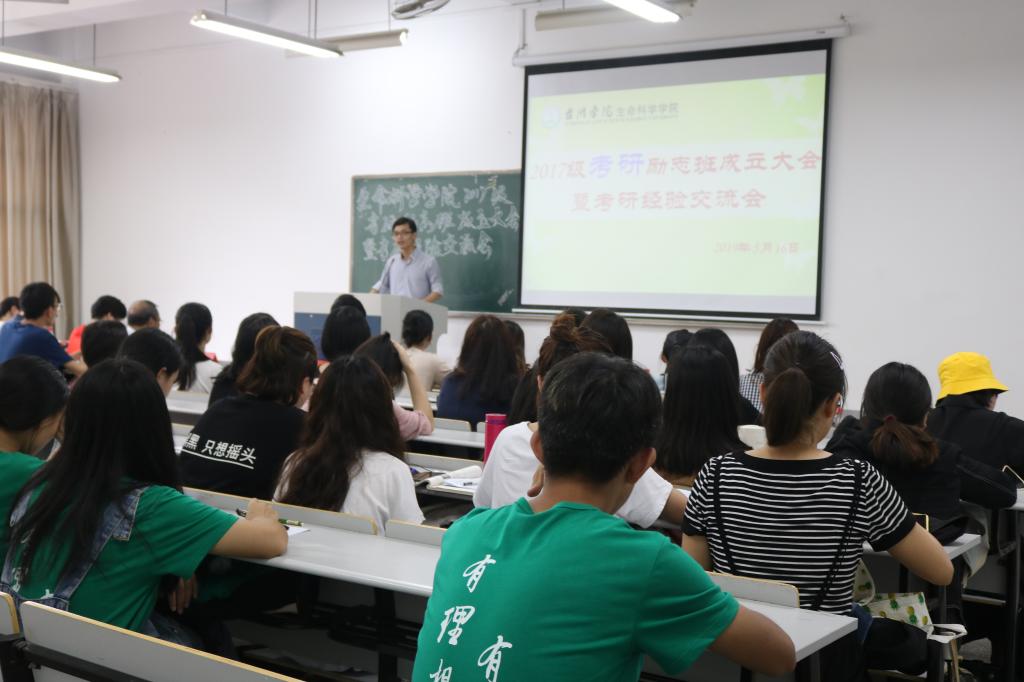 5月16日下午,生命科学学院2017级考研励志班成立大会暨考研经验交流会于椒江校区2-206多媒体教室举行。学院党总支书记柯世省、党总支副书记徐敏出席并讲话,2017级考研励志班班主任钱易博士、全体辅导员参加会议。