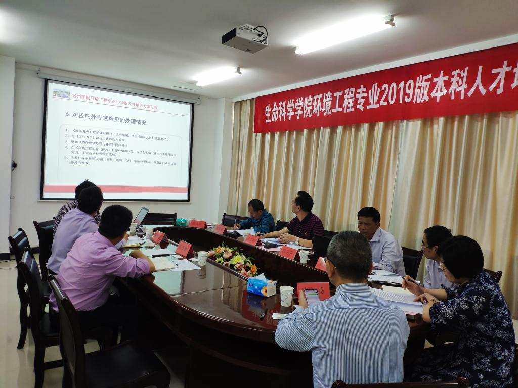 为进一步提高本科人才培养质量,适应新工科建设、工程教育专业认证要求及社会对人才的新需求,5月22日下午,生命科学学院组织召开了环境工程专业2019版人才培养方案专家论证会。会议邀请了浙江工商大学环境科学与工程学院院长沈东升教授、浙江工业大学环境学院副院长林春绵教授、台州市自然资源和规划局副局长王文初教授级高工、台州市环境科学设计研究院院长陈海棠教授级高工、温州大学生命与环境科学学院副院长陈华林副教授、清华长三角研究院台州产业化应用中心、浙江美纳环保科技有限公司总经理陈敏感高工等专家。生命科学学院院长杨万勤教授、副院长蒋胜韬、环境工程系主任朱华跃及专业教师参加论证会。