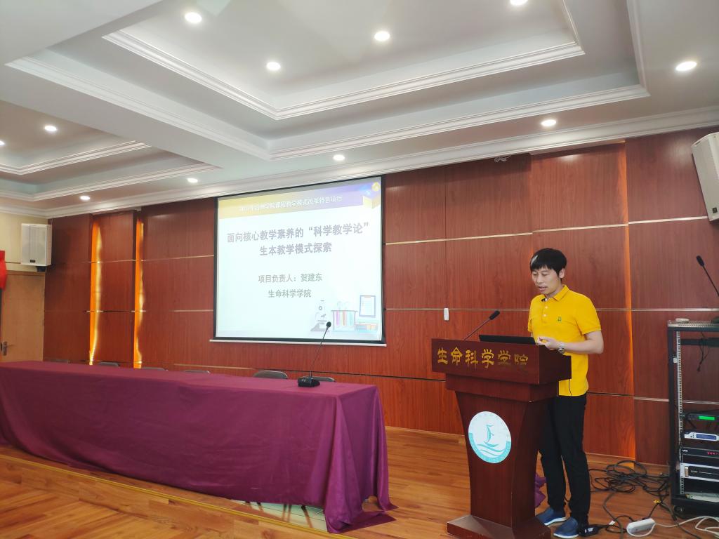 在“说课程”活动中,校特色课程负责人贺建东分享了《面向核心教学素养的“科学教学论”生本教学模式探索》,介绍了围绕课程教学目标,如何优化课程设计、改革教学模式,提升教学效果。生命科学学院其他六位青年教师,则从说课、讲课的角度展示了生命科学学院青年教师的教学风采。