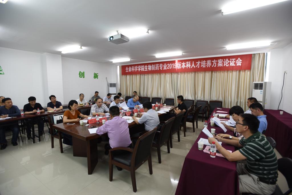 生物制药专业是学校对接区域产业发展新设置的专业,也是生命科学学院未来发展的重要增长点。为了办好生物制药专业,生命科学学院在前期调研、专家咨询的基础上,于6月6日下午,在生命科学学院会议室召开了生物制药专业2019版人才培养方案专家论证会。会议邀请了西南大学药学院院长、生物制药教指分委秘书长胡昌华教授、复旦大学药学院常务副院长王建新教授、温州医科大学药学院副院长肖健教授、浙江理工大学生命科学与医药学院系主任、生物制药教指分委委员吕正兵教授、温州医科大学药学院、教学指导委员会委员王晓杰教授、台州市经济和信息化局党组成员、副局长葛云祥和浙江新银象生物工程有限公司总经理周斌高工等专家。生命科学学院全体党政班子成员、生物制药专业负责人及全体专业教师参加论证会。