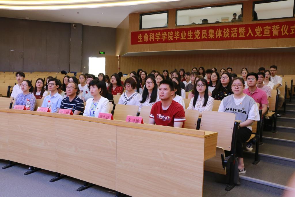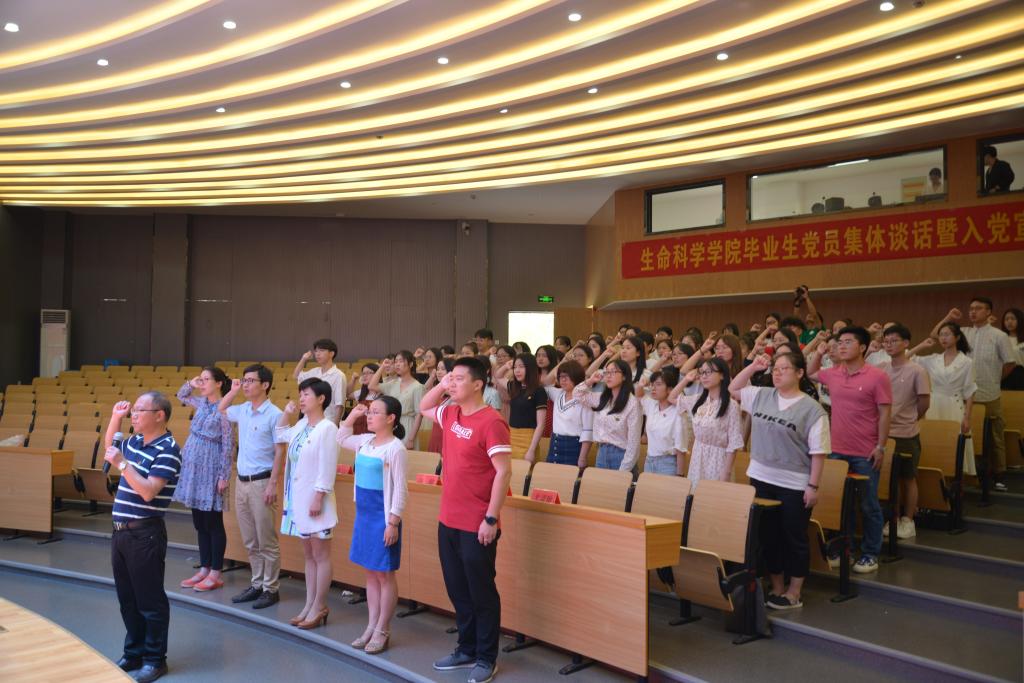 6月16日上午,生命科学学院党总支在校学生活动中心举行毕业生党员集体谈话暨入党宣誓仪式。学院党总支书记柯世省、副书记徐敏出席,各学生党支部书记、全体毕业生党员及2019年新发展党员共60余人参加。