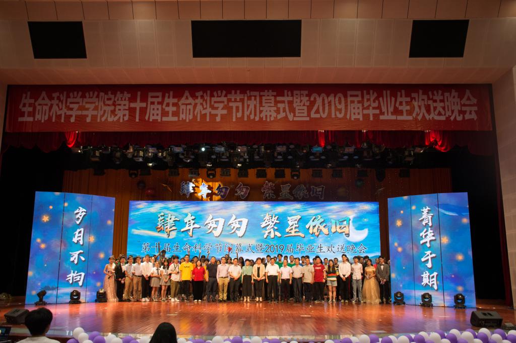 6月16日晚,生命科学学院“乘风科技,闪耀生命”第十届生命科学节闭幕式暨“肆年匆匆,繁星依旧”2019届毕业生欢送晚会在椒江校区大礼堂隆重举行。校党委副书记金先龙、副校长李钧敏、学工部部长张梅芬、保卫处处长杨启富、部分二级学院党总支副书记、生命科学学院党政领导和1200余名师生齐聚一堂,共度美好夜晚。