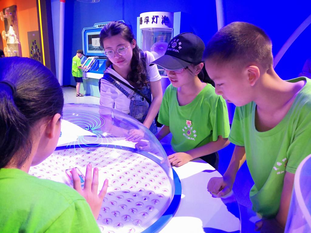 7月3日,生命科学学院科学教育专业学生党支部参与中狮联浙江海门服务队组织的“情暖大山 狮爱助学”公益夏令营活动,带领山区小朋友参观台州市科技馆,为他们讲解科学知识。