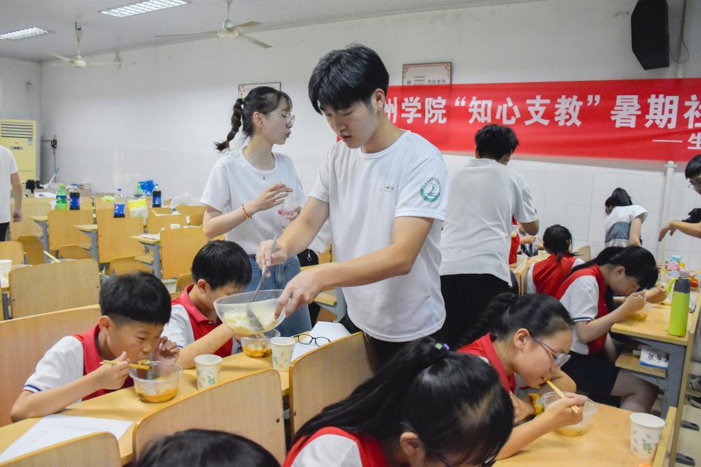 7月7日下午,受台州学院“知心支教”暑期社会实践队的邀请,两名乌兹别克斯坦籍留学生走进椒江区东山中心小学,化身支教志愿者,与小学生们深入交流,并一起制作、品尝饺子。