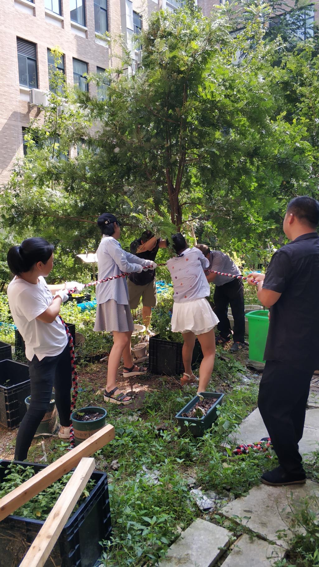 从生命大楼的内庭到外围,一棵棵苗木在“一二三”的号子声中被重新扶起,在大家的精诚合作下,学院周围的树木全部重新矗立,再获生机,台风过境后的那种“无可奈何花落去”的无助颓势瞬间荡然无存,大楼内外又恢复了往日的勃勃生机。