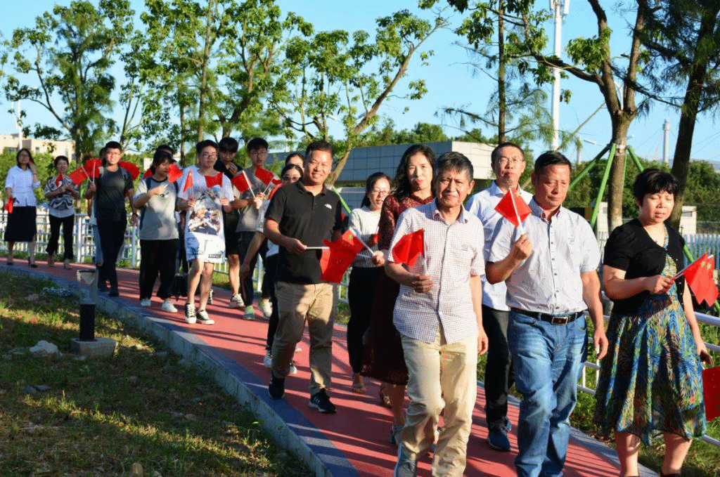 9月19日下午,生命科学学院师生们手舞国旗、笑容满面、意气奋发,阔步行走在椒江校园内的绿道上,大家以健身走的方式喜迎新中国70华诞。