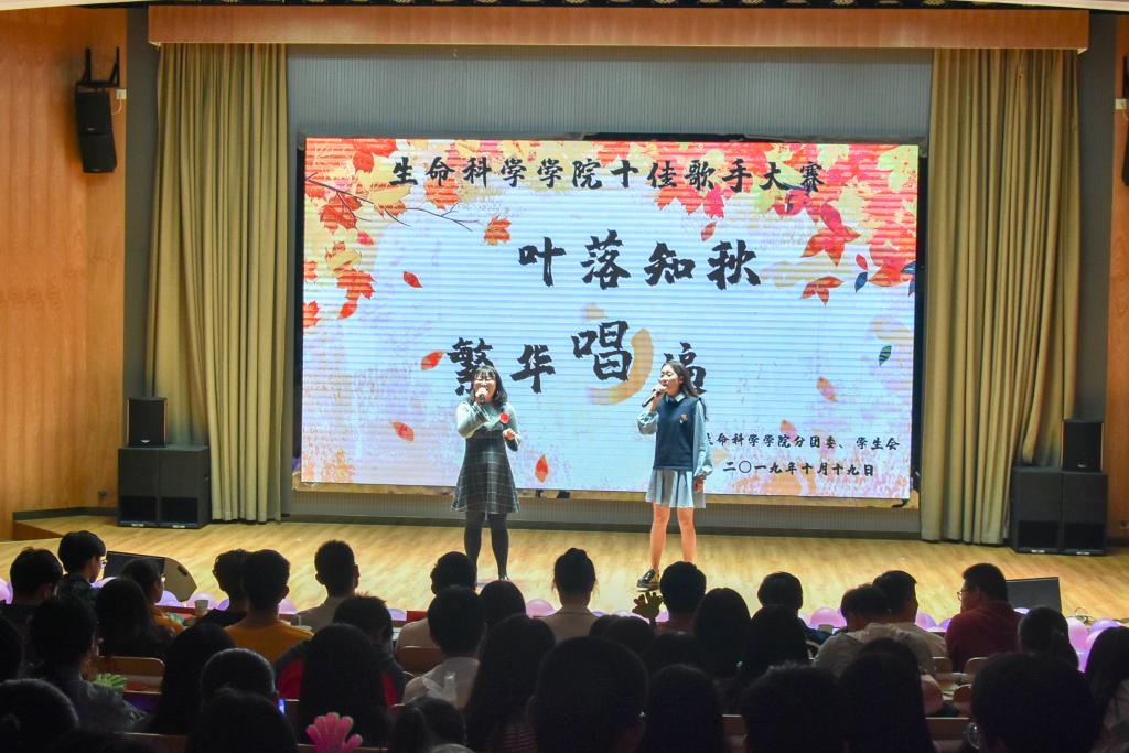 歌声嘹亮,音符飘扬,青春激荡,梦想起航。10月19日晚,生命科学学院“叶落知秋,繁华唱遍”2019年十佳歌手大赛决赛在学生活动中心圆满落幕。学院班主任、辅导员出席并担任评委,三百多位学生观看比赛。历经初赛、复赛成功晋级决赛的10名选手展开精彩对决。