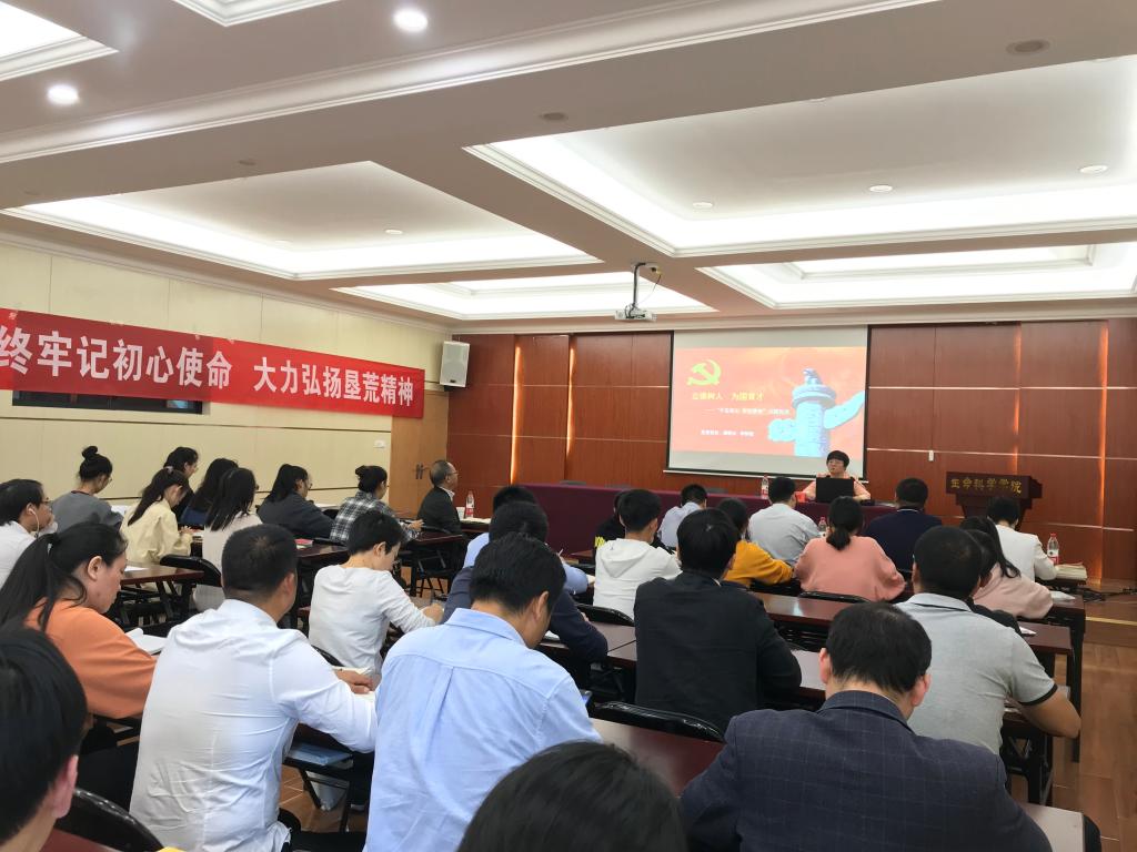 10月25日下午,校党委委员、副校长李钧敏应邀为生命科学学院党总支全体师生党员作“不忘初心、牢记使命”主题教育专题党课报告,生命科学学院党总支书记柯世省主持,师生党员近100人参加党课学习。