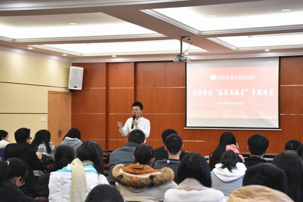 12月6日晚,我校优秀校友、兼职教授,浙江省中学生物特级教师金松涛应邀回校,为生命学院300余名师范生作“如何成就一名好老师”专题讲座。学院党总支书记柯世省主持讲座。