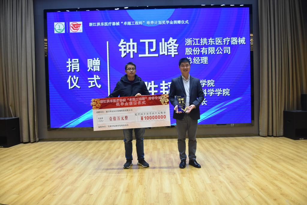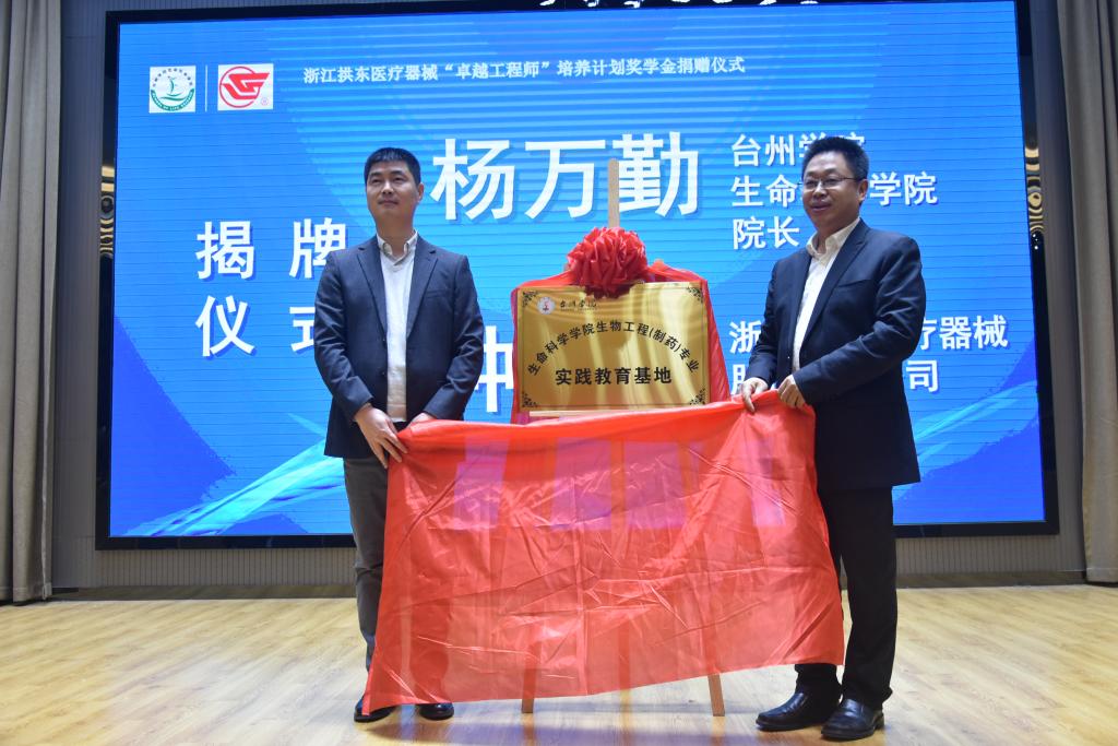 浙江拱东医疗器械股份有限公司,1985年创建于台州黄岩,专注于一次性医疗器械和医疗及检验用品的开发与生产,经过三十多年不懈努力,已成为国内医疗与实验室耗材的知名企业,发展为中国医疗器械行业协会理事单位。公司向生命科学学院捐赠人民币共计拾万元整,用以设立“浙江拱东医疗器械‘卓越工程师’培养计划奖学金”,简称“拱东奖”。奖学金主要面向生命科学学院生物工程和生物制药专业的优秀学生,激励学生成长为具有工程素养和创新能力的高素质人才。