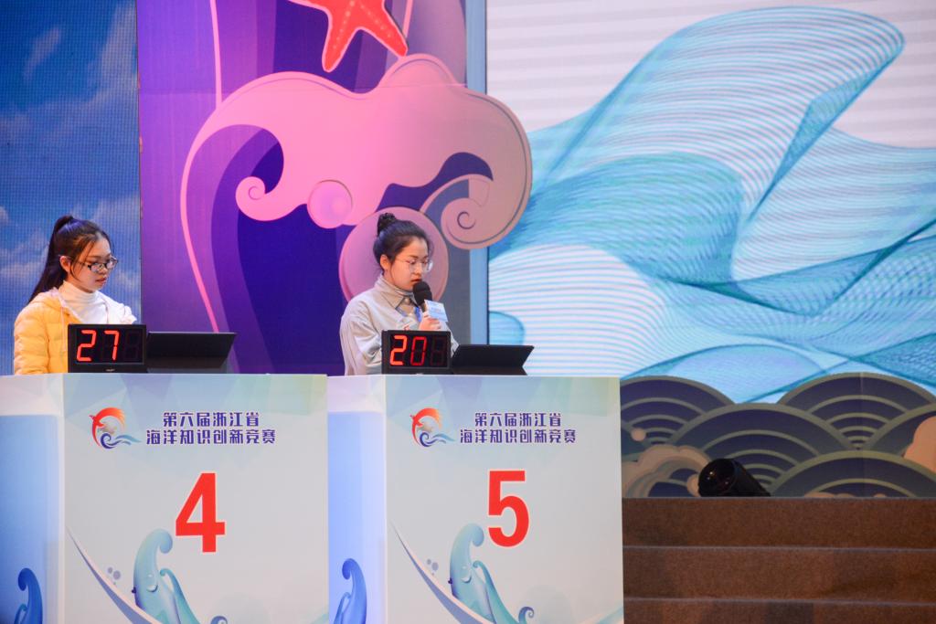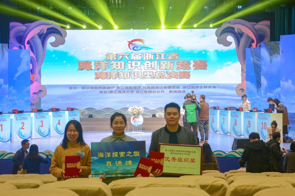 今年以“学知识,爱海洋”为主题的第六届浙江省海洋知识创新竞赛,在赛事模式上独具新意,分设海洋知识类与海洋科技创新类两个竞赛类别。其中,海洋知识类自今年7月启动以来,先后吸引了2万多名大学生及社会公众积极参与,经过层层选拔,由大学生组网络赛产生的5名优胜者和经组委会评议产生的38名学校推荐选手,入围海洋知识类大学生组竞赛半决赛。经过半决赛笔试和两轮现场答题,10名选手脱颖而出,登上总决赛的舞台。总决赛共设“极速60秒”、“出奇制胜”、“抢先出击”、“险象环生”四个环节,不仅考验选手们的知识储备,更考验其心理素质与应变能力。经过四轮激烈厮杀,最终,朱仪倩获得二等奖,潘苑霞获得三等奖,台州学院与浙江大学、浙江师范大学、浙江海洋大学、浙江工业大学等10所高校获海洋知识类大学生组“优秀组织奖”,尤灵敏与来自浙江大学、浙江师范大学、浙江海洋大学等12位老师荣获海洋知识类大学生组“优秀指导教师奖”。