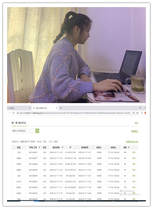 宗恩敏老师在学习通线上批改《环境工程原理》作业——虽处武汉,仍不忘教学