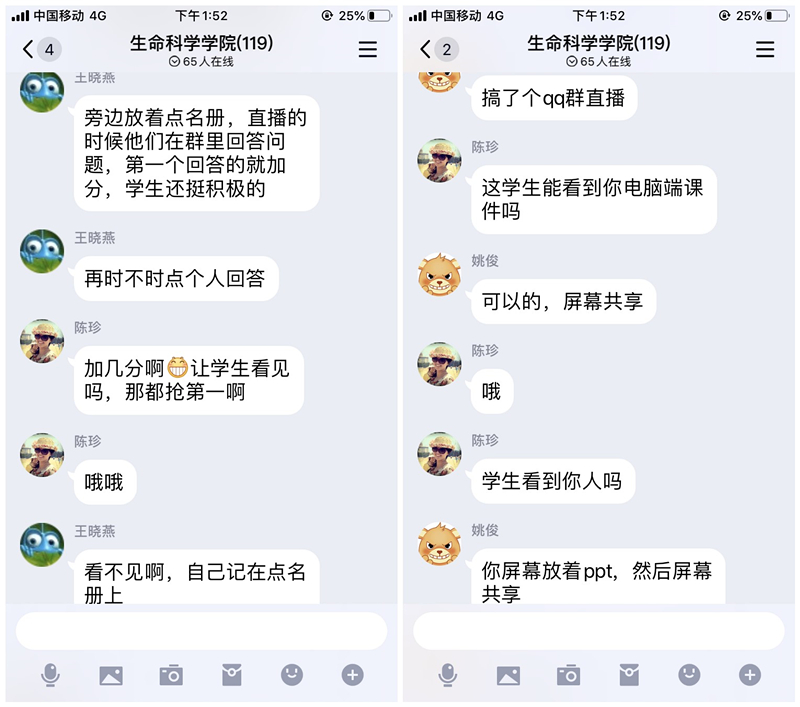 王晓燕老师利用学习通+QQ直播相结合的方式开展《现代生物学》线上教学