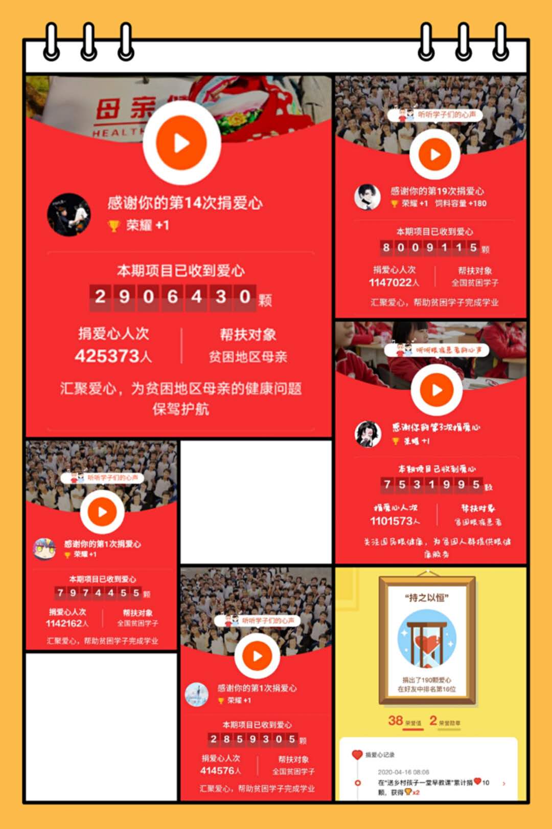此次活动借助支付宝的蚂蚁森林合种与蚂蚁庄园捐爱心的平台,开展了方式新颖的公益活动,得到了广大同学的热切关注。本次活动共有350余人次参与到蚂蚁森林合种活动,组成了数支合种队伍,参与的同学通过低碳行动积攒绿色能量,完成每天230g浇水量的七天打卡任务,共同浇灌合种树木并最终获取环保合种证书;共有420余人次加入蚂蚁庄园捐爱心活动,参与的同学通过使用支付宝付款获取饲料、饲养小鸡、换取鸡蛋从而完成至少一次爱心捐赠。大家都积极参与,认真对待,最终按时完成了预期的所有任务。