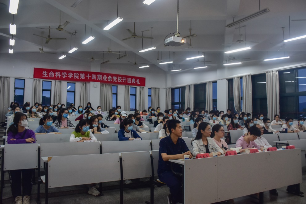 5月22日晚,生命科学学院第十四期业余党校开班典礼在2-305教室举行,学院党总支书记柯世省、学院党总支副书记徐敏出席,全体学生党支部书记、党员代表及103名党校学员参加党校学习。