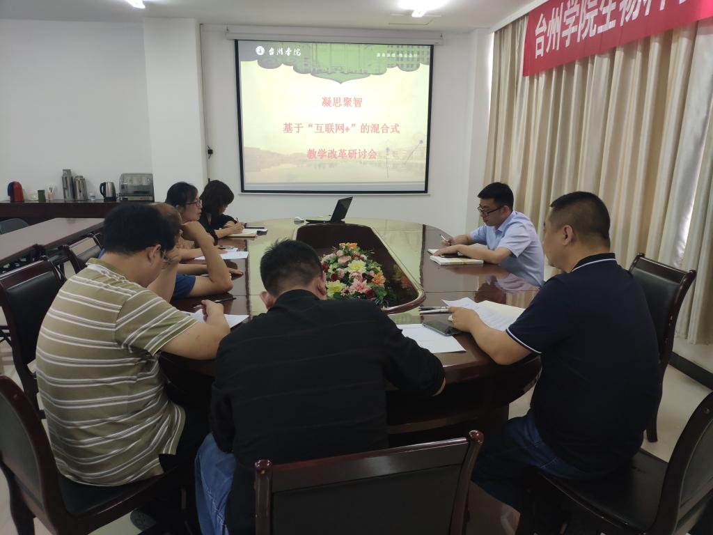 6月11日下午,生命科学学院在D470会议室开展 “凝思聚智--基于“互联网+”的混合式教学改革研讨会”。蒋胜韬副院长主持,各学科组负责人和部分教师参加。