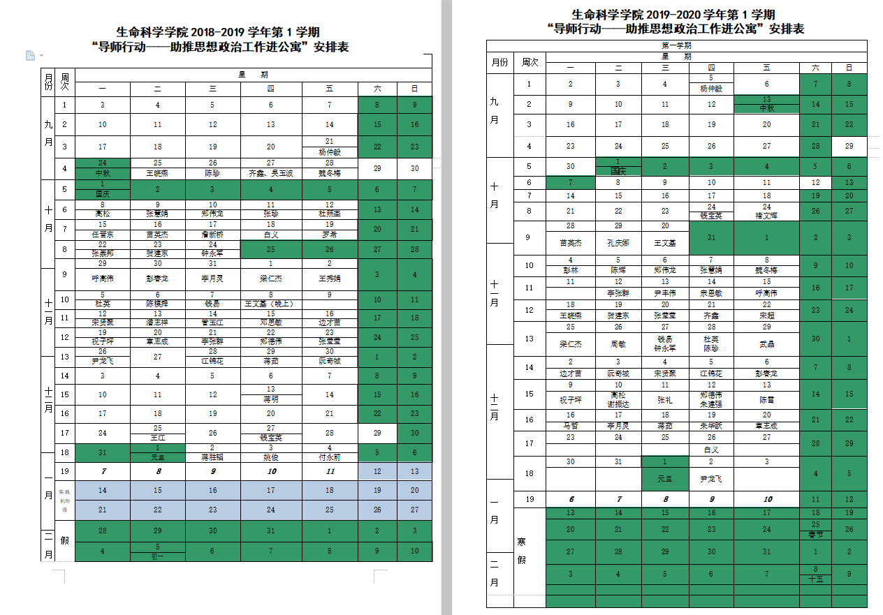 为进一步加强和改进大学生思想政治工作,整合党员、教师联系寝室制度和“导师制”等现有工作资源,创新“全员育人”工作方式,深入推进学生思想政治教育工作向公寓延伸。生命科学学院自2014年起在全院范围内开展“导师行动——助推思想政治工作进公寓”活动。活动的举办进一步强化了专业课教师的育人责任,各位导师主动走进学生公寓,在“生命佳苑”公寓活动室,对学生进行学业、生活、思想方面的指导,主动帮助学生解决实际问题,服务学生成长成才,助推学生思想政治教育工作。