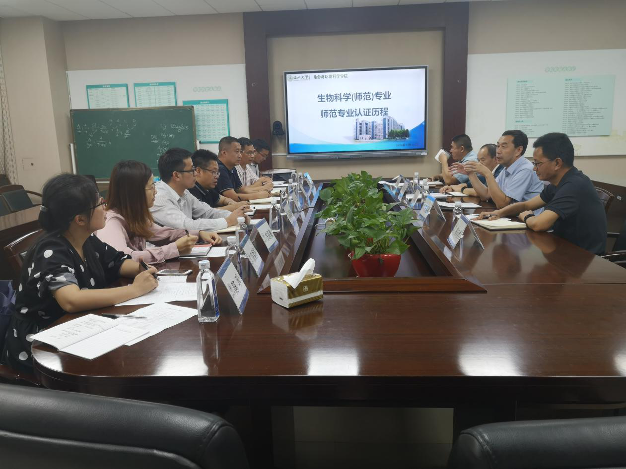 温州大学生命与环境科学学院院长阎秀峰介绍了温州大学生命与环境科学学院的办学历史、发展过程、专业设置及平台建设的基本情况。副院长陈华林、副院长郑向勇分别从生物科学(师范)的专业认证历程和内涵、科研平台建设进行了介绍,生物科学专业负责人陶月良就认证过程中的指标解读和任务分解等细节进行了分享。