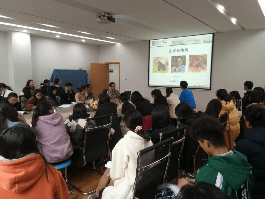 诸立新教授从中国文化着手,引入本次讲座的主角蝴蝶,图文并茂地讲授了蝴蝶分类、多样性监测、蝶类分子系统学等知识,并对安徽省部分蝴蝶种类进行了介绍,极大地调动了同学们的听讲积极性,激发了大家探索蝴蝶奥秘的兴趣。讲座过程中,诸立新教授结合自身经历,与同学们分享了有关蝴蝶的学术研究,他语重心长地跟同学们说:想要在生命科学领域取得成功,兴趣和实干精神缺一不可。