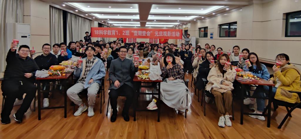 12月26日晚,生命科学学院18科学教育1、2班在学院241会议室如期开展“壹期壹会”观影活动。学院专任教师钱宝英应邀出席,班主任翁添富主持活动,全体师生欢聚一堂,共赏电影、共品奶茶。