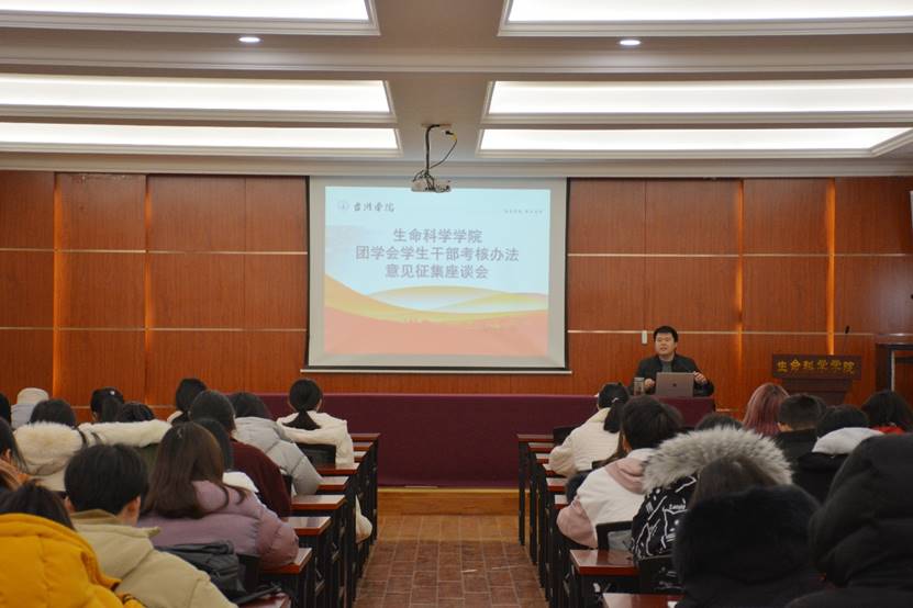 为进一步民主与科学地推进团学会学生干部考核办法的修订,1月9日上午,生命科学学院在D241召开团学会学生干部考核办法意见征集座谈会,会议由学院分团委书记尤灵敏主持,团学会全体成员分部长与干事两场参会。