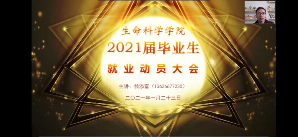 为帮助毕业生全面了解当前的就业形势和就业政策,转变就业观念,树立正确的就业观和择业观。1月23日,生命科学学院通过钉钉平台召开2021届毕业生就业动员大会。学院学工办主任翁添富主持,全体2021届毕业生参加会议。