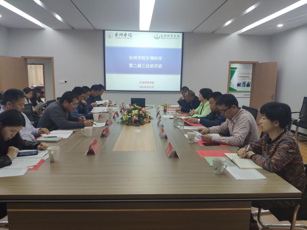 4月1日下午,生命科学学院在D470会议室举行了生物科学(三台班)开班仪式。台州学院副校长李钧敏教授、生命科学学院院长杨万勤教授、党总支书记柯世省教授、副院长付永前教授、党总支书记徐敏出席;教育部新世纪优秀人才于飞海教授等导师代表、生物科学(三台班)全体学生参加了开班仪式。副院长蒋胜韬副教授主持。