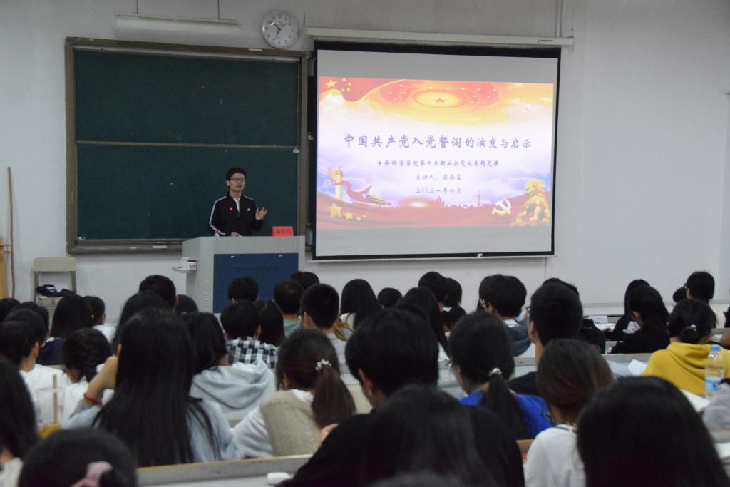 4月23日晚,学院学工办主任翁添富在2-303为第十五期业余党校学员作“中国共产党入党誓词的演变与启示”专题党课,全体学员参加学习。