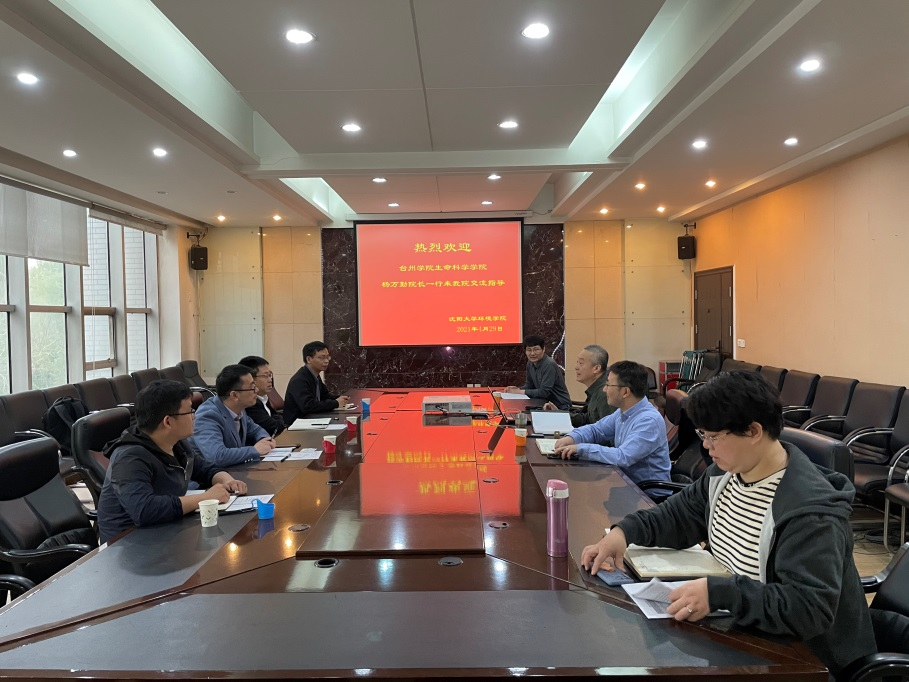 调研组受到沈阳大学环境学院院长程全国教授,副院长杨新瑶教授和魏建兵教授,环境工程系主任牛之欣副教授、环境生态工程专业系主任李晔副教授等热情接待并进行座谈交流。程全国院长等就沈阳大学环境学院的基本情况、环境工程专业认证、环境生态工程专业建设历程、专业定位、人才培养目标与培养途径等进行了系统介绍。交流会上,杨万勤院长介绍台州学院生命科学学院基本情况,并对兄弟院校的热情接待和经验的无私分享表示感谢,同时就环境工程专业工程认证和环境生态工程的定位、人才培养方案制定、专业建设等方面进行了请教和交流。