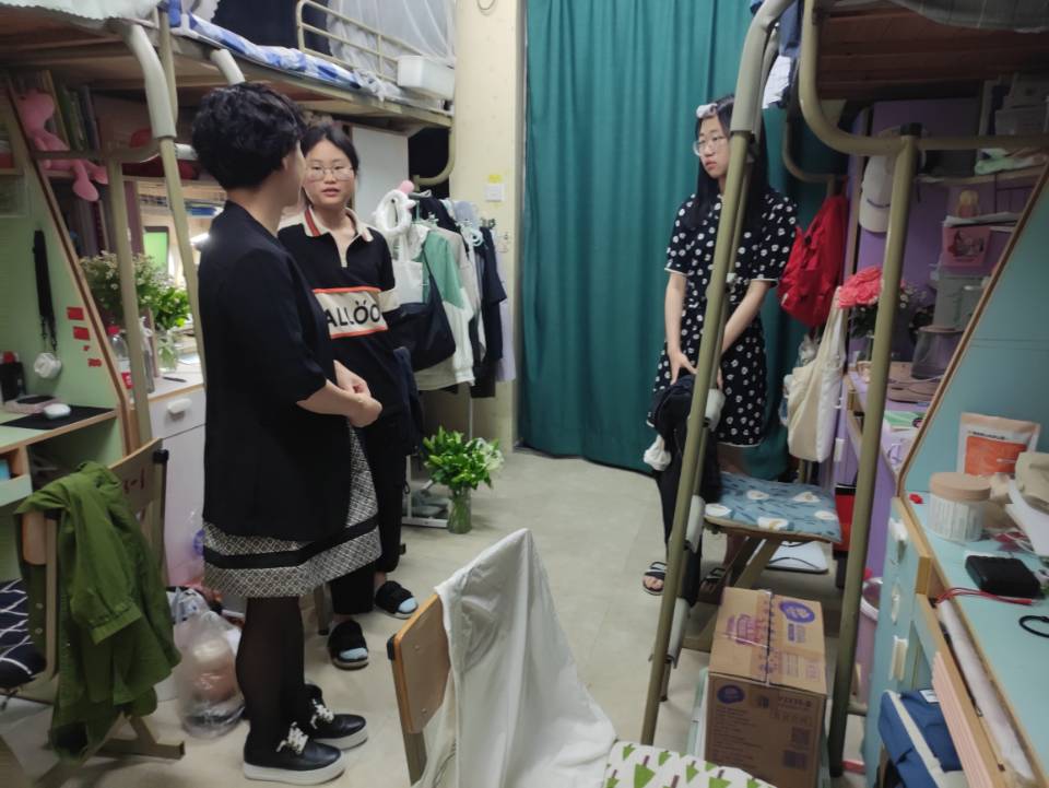 检查过程中,徐敏就“寝室共同体”日报告制度的执行情况与学生们进行交流,大家普遍反映,能够按照学院相关要求,每天坚持打卡,及时上报寝室情况,并且在“寝室共同体”建设中,形成了较好的学习生活习惯和互帮互助的氛围。