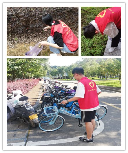 烈日当空,身穿红马甲的党员同志们不惧骄阳,活跃在六幢教学楼周围。有的清理花坛垃圾杂物;有的清除道路设施污垢;有的劝阻不文明行为;有的规范摆放单车,积极倡导同学们养成文明行为,引导青年大学生讲文明、树新风。活动过程中,同志们虽汗流浃背,却始终热情洋溢,较好地展示当代党员大学生应有的带头示范作用,以实际行动践行共产党员的初心和使命。