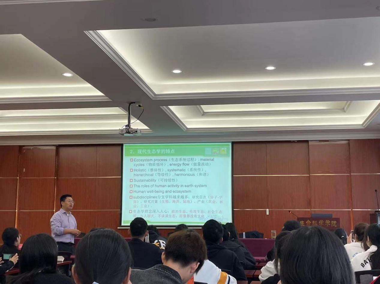 杨万勤教授通过与同学们互动聊天的方式进行授课,结合个人经历,以诙谐幽默的语言讲授知识。同学们积极发言,气氛热烈。课程以《生态学研究进展》为主题,讲解了生态学的定义、发展趋势和前沿科学问题。本次讲座不仅让同学们明白了生态学在国计民生中的重大意义,还加强了同学们对生命科学的理解,为后续的专业学习和未来的工作打下了基础。