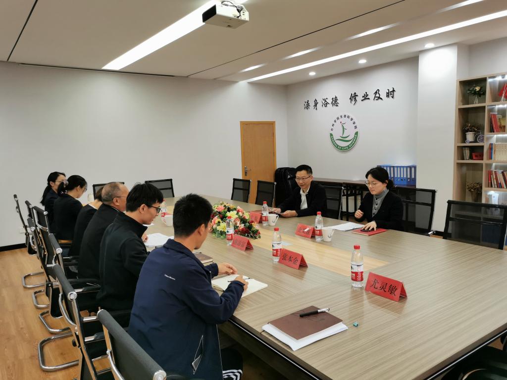 11月3日下午,校党委委员、宣传部部长金松走访生命科学学院开展专题调研,学院党委书记柯世省、副书记徐敏及全体辅导员参加。