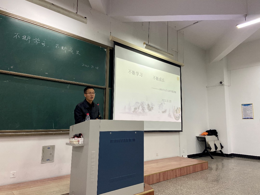 11月18日,邱永彬老师来校做题为《不断学习,不断成长》的讲座,该讲座作为卓越班师道传承的内容。