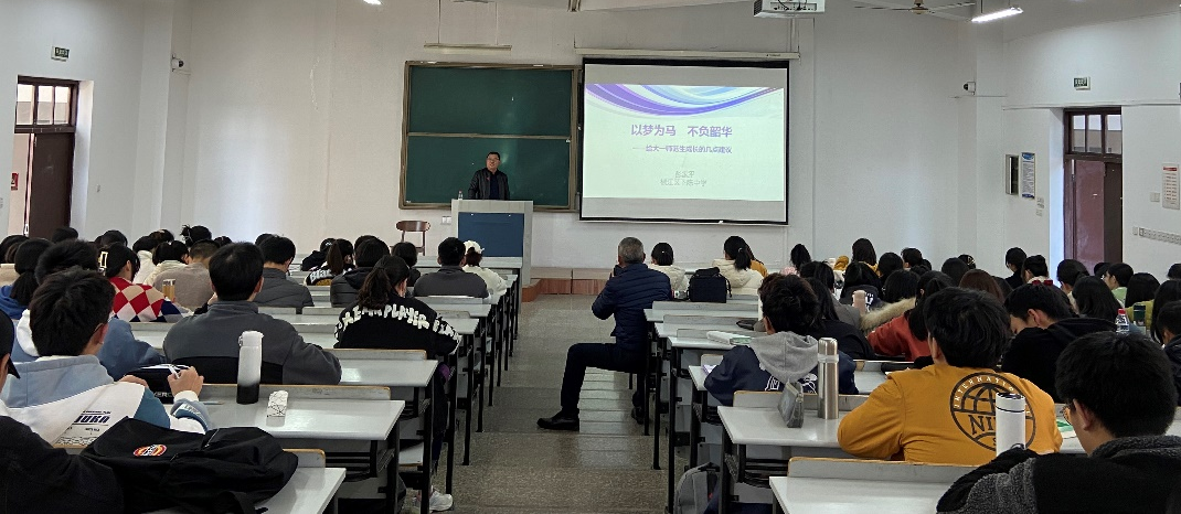 彭家平老师讲授的主题为《以梦为马,不负韶华》。报告分成四个部分,第一部分为现状的分析,给同学们简单介绍了一下现在教师的待遇、政策等,给大家一种作为教师的幸福感,同时也分析了现在的教师编制考试办法,让同学们对学校对教师的需求有一个大概的了解,也就是对教师的专业素养、教学基本功、应变能力和发展潜力等有要求。接下来的第二和第三部分就从教师专业素养和教学基本功出发,告诉同学们教师的专业素养就是专业精神、专业知识、专业能力和专业实践等。教学的基本功包括书写、课堂语言、解读教材、课堂教学设计基本功等。因此,最后一部分,针对教师专业素养和教学基本功,对同学们的大学四年提出了一定的要求,希望同学们在大一就开始准备,努力提升自身的教师专业素养和教学基本功。彭老师结合自身的经历及生活中的例子,将报告讲解的通俗易懂,得到学生的一致好评。