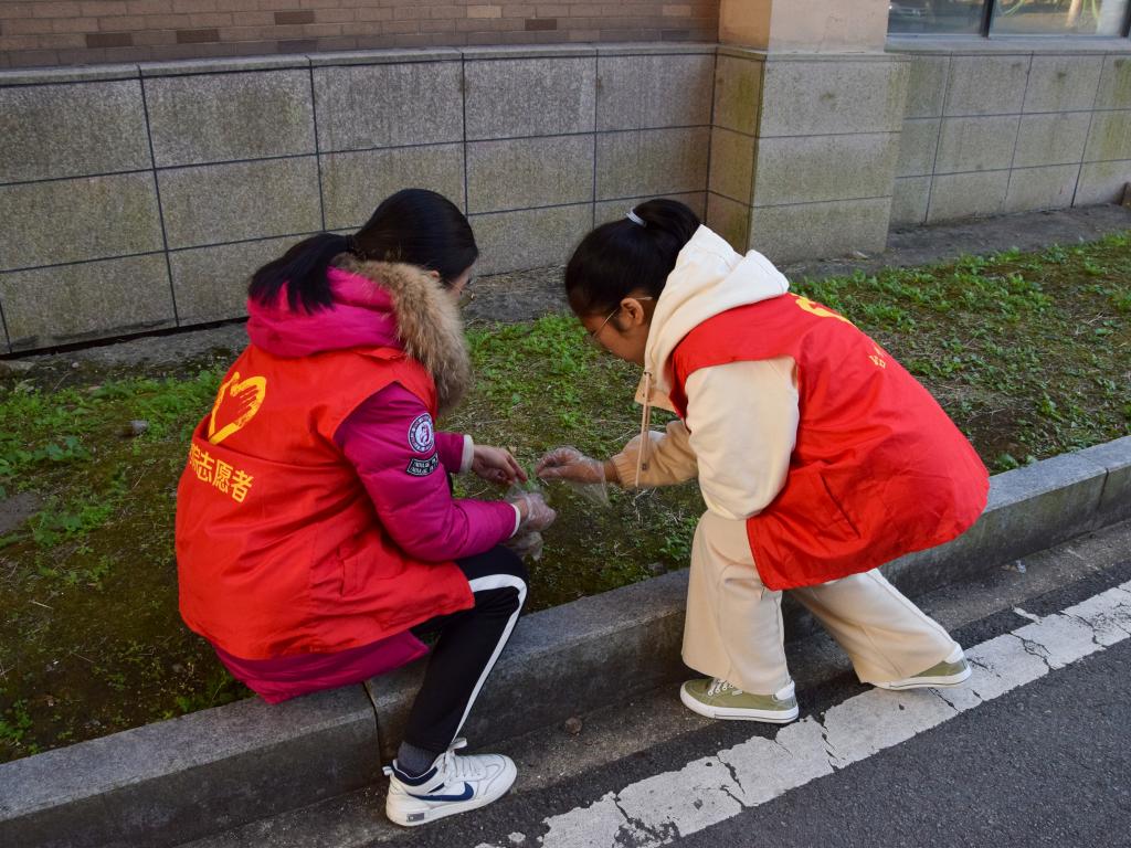 志愿者身穿红色马甲在教学楼下集合,在大家都在午休的时间,他们手持清洁工具,按照活动安排,进行校园绿化带清洁和共享单车摆放工作。在各志愿者的配合下,清洁工作有条不紊地展开。对活动范围内的烟蒂、废纸和塑料瓶等垃圾进行了彻底的清理,确保校园整洁。