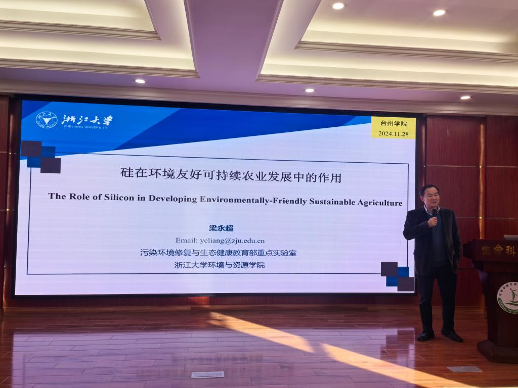 2024年11月28日,浙江大学梁永超教授应邀来我校生命科学学院开展学术交流,并作了题为《硅在环境友好可持续农业发展中的作用》的学术报告。
