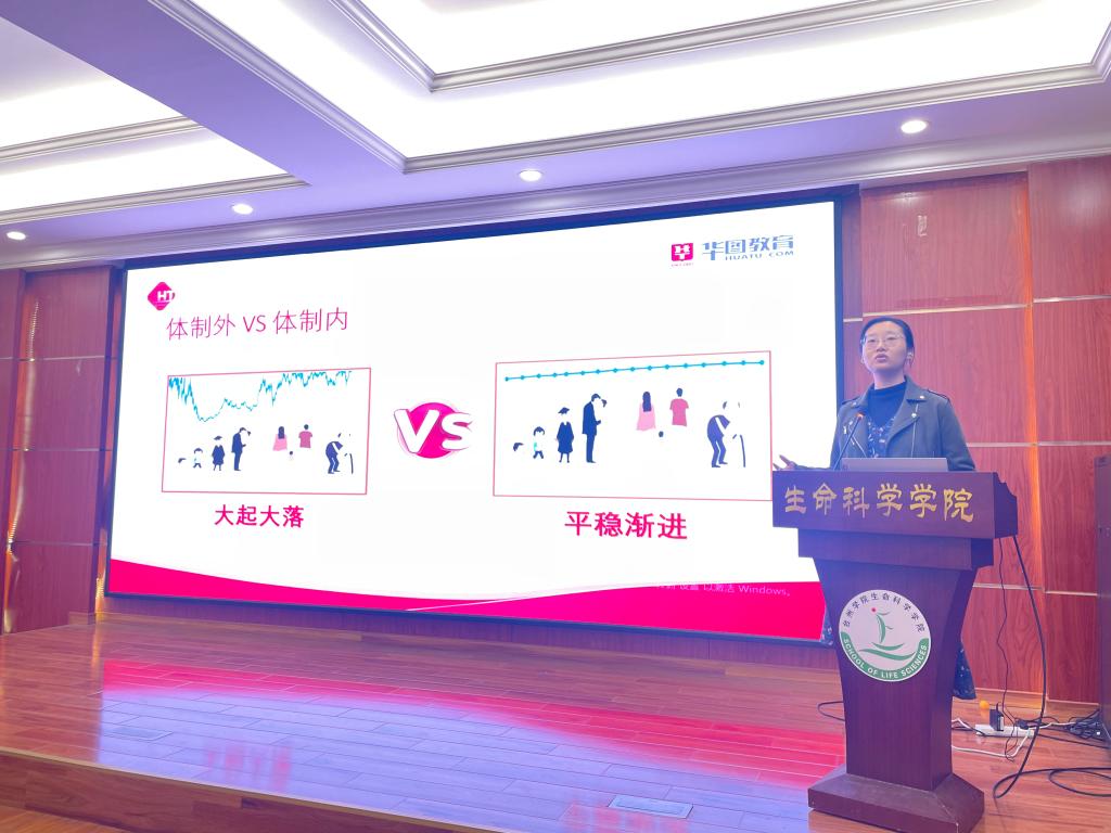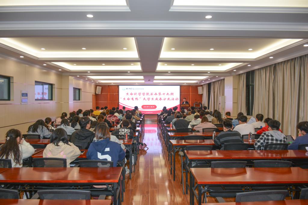 11月6日晚上,生命科学学院在学院大会议室举办第十九期“生命有约”大学生成长沙龙。华图教育主讲教师张啸邦应邀作讲座,100余名有意向考公的学生参加,活动由辅导员程子良主持。