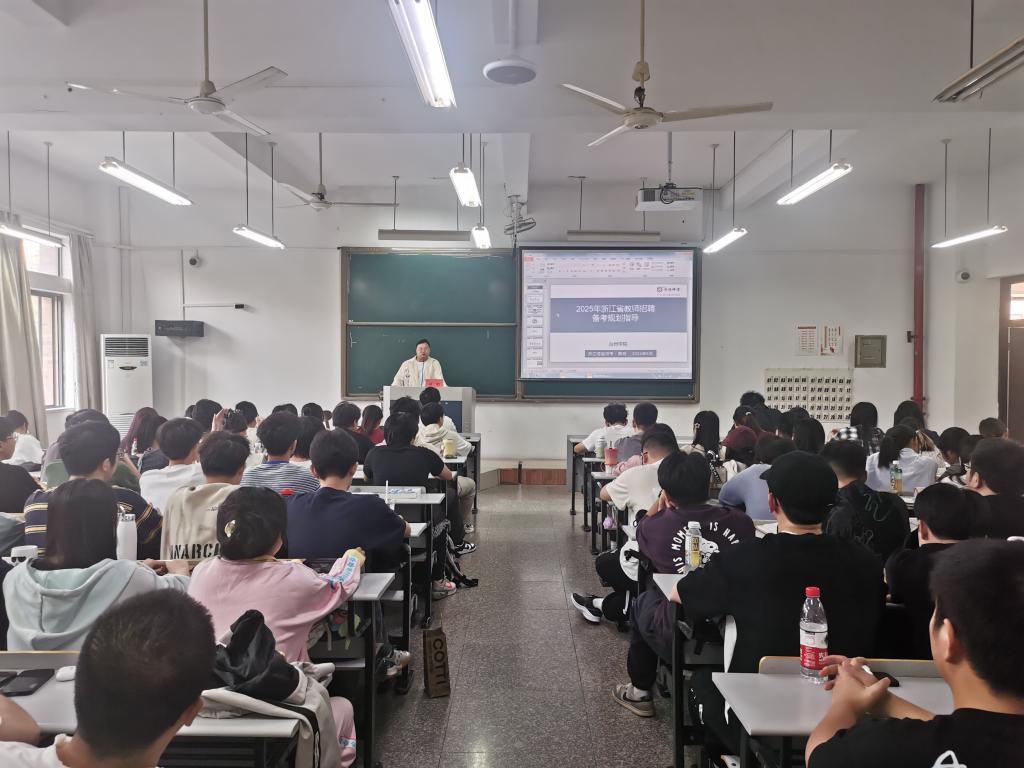 10月11日下午,生命科学学院第十六期“生命有约”大学生成长沙龙在2号教学楼302教室举行。浙江博越教育科技有限公司台州分校校长黄明应邀作教师招聘备考规划指导,22级科学教育专业全体同学参加,活动由就业辅导员程子良主持。